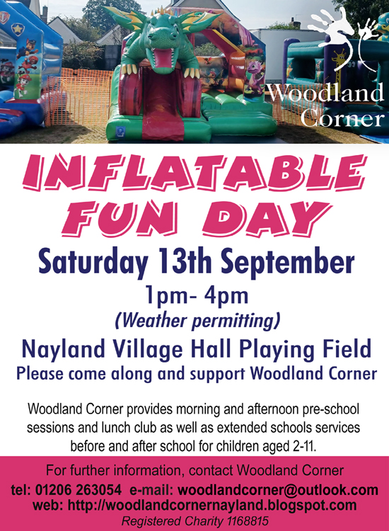 Please come along and support Woodland Corner at our Inflatable Fun Day! See below for more details.